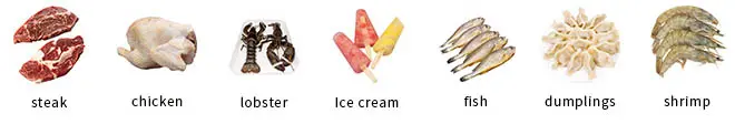 This chiller is suitable for display goods like: steak, chicken, lobster, ice cream, frozen fish, dumplings, shrimp and so on.